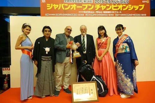 3年ぶりの開催となるブラインドゴルフの世界大会「2019 ブラインドゴルフ ジャパンオープン チャンピオンシップ」。海外からも選手が参戦し、ラウンド中や表彰式では日本語、英語、イタリア語などさまざまな国の言語が飛び交った。国境を超えた交流、友情が、ブラインドゴルフを通じて生まれていた。