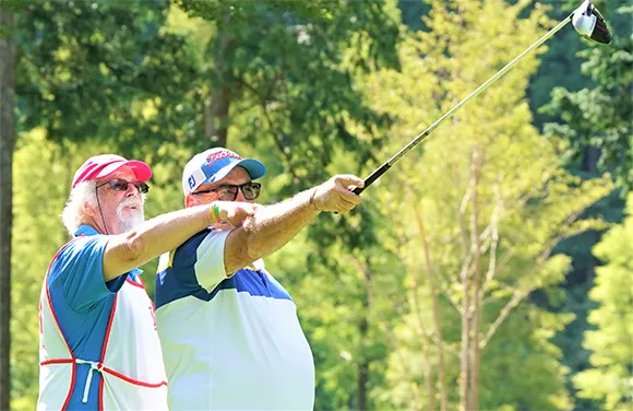 長く続けてきた支援活動。それは、盲人ゴルファーの「ブラインドゴルフをパラリンピック競技に」の夢をかなえるためだ。今大会には、31年前に半田氏と一緒にラウンドし、ブラインドゴルフ支援のキッカケを作った盲人ゴルファーのロン・アンダーソン氏(78)が参戦していた。久々の再会に旧交を温めたが、実は彼からも「皆の夢がパラリンピックでプレーしたい。ミスター半田、かなえてくれよ!」と懇願されていた。