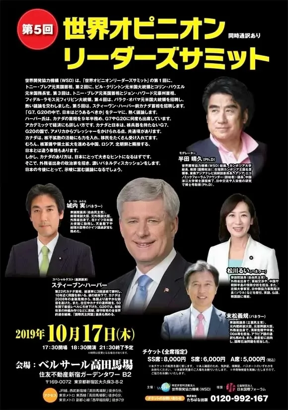 スティーブン・ハーパー前カナダ首相を招聘、第5回世界オピニオンリーダーズサミット