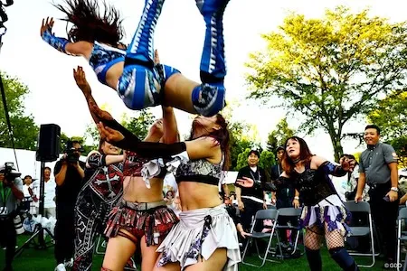 動画の後半からは、このトーナメント終了後に行われた女子プロレスの試合も見ることができます。こちらもレジェンド、魅力的な若手女子レスラーたちが登場し、観ていて楽しい試合でしたね。