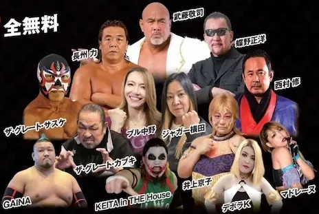 男子プロレスは、ザ・グレート・サスケ、GAINA、VS 西村修、KEITA in THE Houseです。セコンドにグレート・カブキが登場します。セコンドが何かやらかしそうな気配ですね。