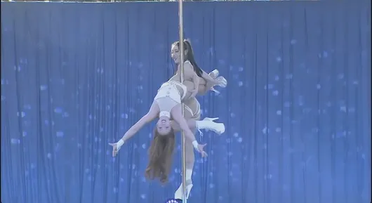 さらに試合終了後には、楽しい企画が待っていました。国内外で活躍するポールダンサー10人による、ハイレベルなポールダンスを鑑賞しました。鍛え込まれ、均整の取れたスタイルの美しいダンサーたちが、変わるがわる3つのポールを使って行うパフォーマンスに、会場のみんなが見惚れていました。