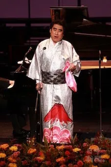 さすがにここまでハデになると客席からクスクスと笑いがこぼれる。また二重唱では銀をベースに赤い富士を描き、手前にピンクの波をデザインした着物で登場した。今回はいつものオヤジギャグ満載のトークは一切なかったが、この派手な着物ショーがコンサートを和やかにした。